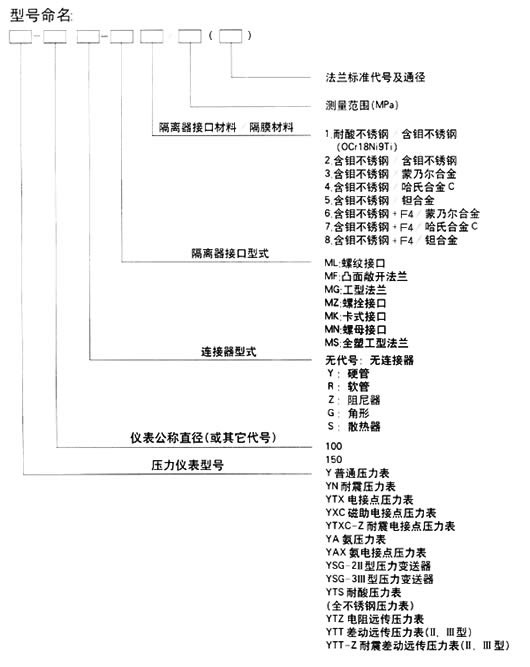 不得拆卸或更換已配置的儀表以免填充液外泄影響性能。訂貨請說明配置儀表名稱、型號、測量上限、精確度及連接管型式、軟管長、隔離器接口型式、隔離器接口材料、隔膜材料,以及法蘭配接管子通徑、標(biāo)準(zhǔn)代號等。如要求配置其它型式儀表,請另行詳細說明。